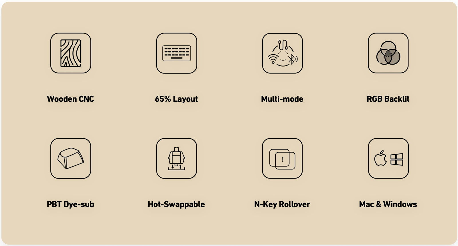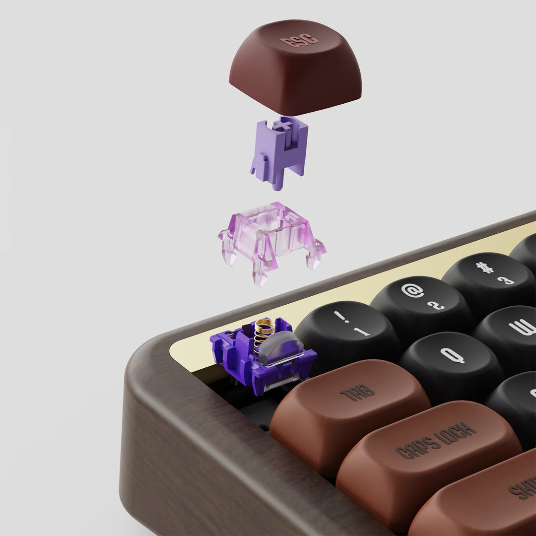 精密なCNC技術で仕上げられた美しいウォールナット材を使用し、このキーボードに優雅さと耐久性を与えています。日常的な使用にも、プロフェッショナルな用途にも適したMU01 は、自然の美しさと現代技術が融合した魅力的なデザインを提供し、独特なタイピング体験を実現します。
