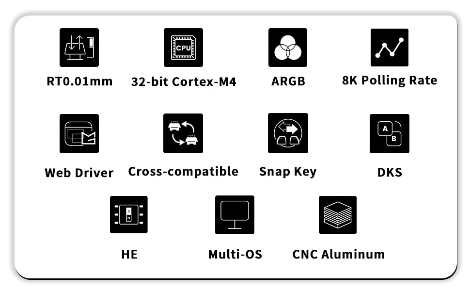 0.01mm刻みの超高精度なラピッドトリガーと調整可能なアクチュエーションポイントを実現。これにより、ユーザーはタイピングやゲーム体験を細かく調整でき、応答速度の向上と精度の強化を保証します。特に、競争の激しいゲーム環境に最適です。