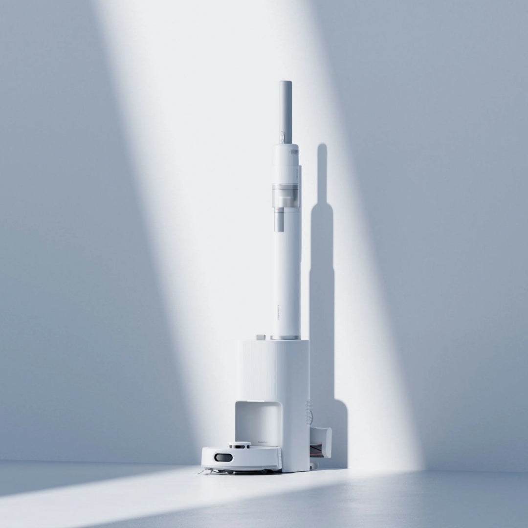 FusionBaseでロボットとスティック両方の集じんと充電を1台のステーションで行います。
