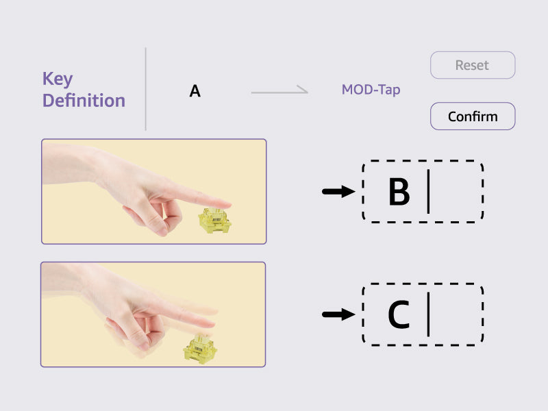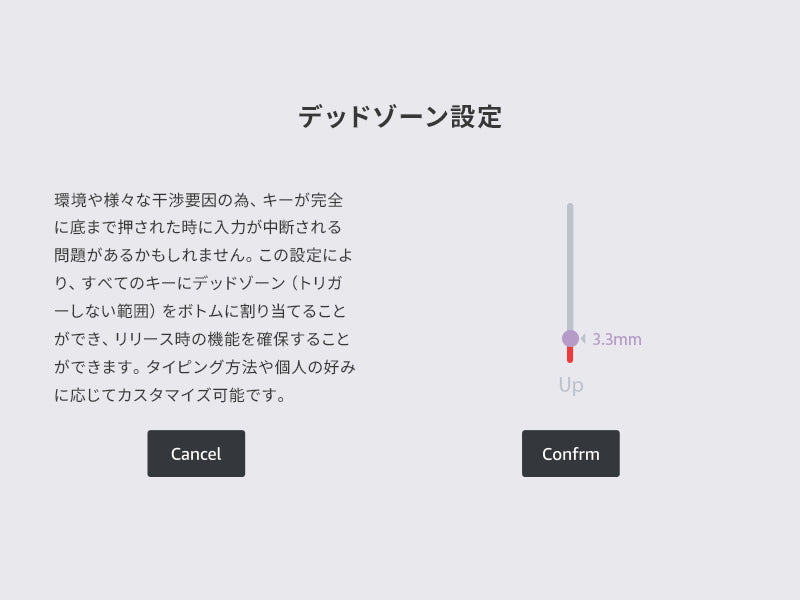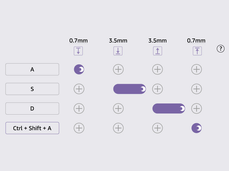 特にタクティカルFPSゲームで絶大な効果を発揮するラピッドトリガー機能を業界最先端レベルのスペックで搭載。ラピッドトリガー機能は、キーをどの深さまで押し込んでも、設定した数値分キーを戻せば入力OFFにすることが可能です。これによりFPSゲームにおけるストッピングがより高速で行うことができたり、切り返し動作がよりスムーズに行うことができたりします。