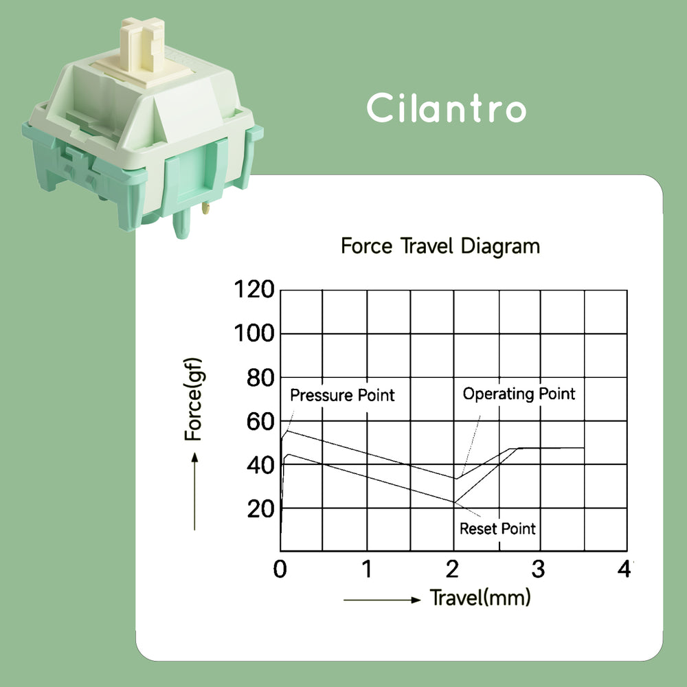 Cilantroスイッチは、Akko初となる“ディープクラック”系のタクタイルスイッチです。