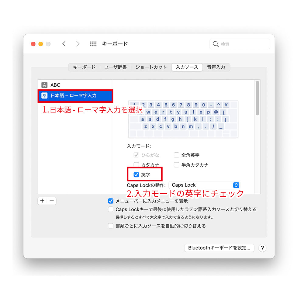 ソフトウェアの設定後、Macの「かな」キーと「英数」キーが切り替わらない場合は、MacOSのシステム環境設定のキーボード設定をご確認ください。