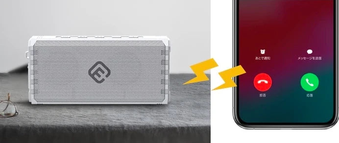 本体前面にマイク付き(マイク内蔵)で、スマートフォンの電話機能と連動してハンズフリー通話が可能です。