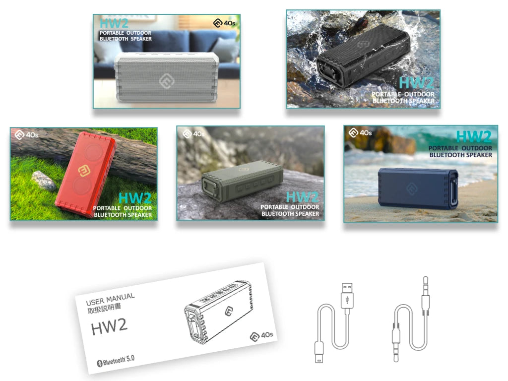 40s HW2 ポータブル 防水スピーカー シルバーグレイ
