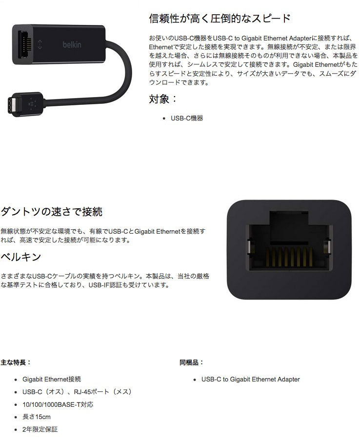 BELKIN USB-C to LANポート Gigabit Ethernet アダプタ