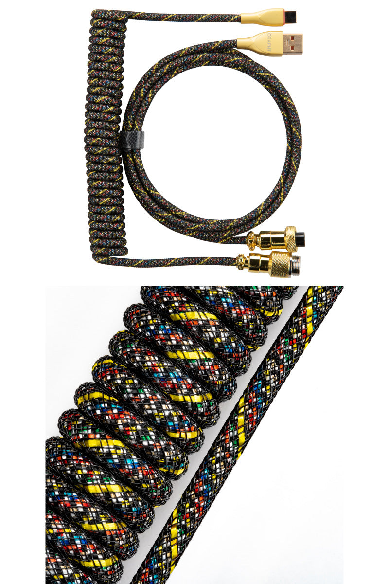Team GRAPHT PP / PE二層編組 カスタムコイルケーブル USB Type-C - USB A アビエーションコネクタ仕様 最大3.35m パイソン