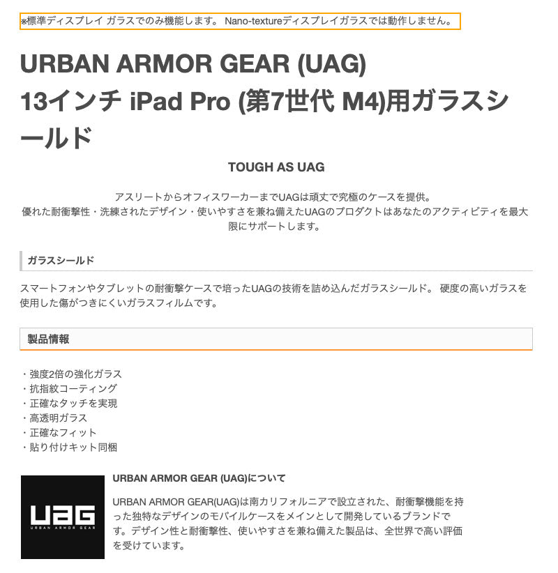 | UAG 13インチ iPad Pro M4 GLASS SHIELD | UAG-IPDP13M4-SP | 在庫少なめです |