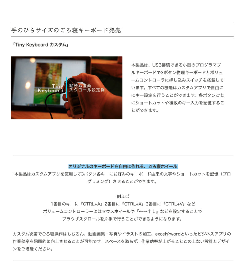 ■ オリジナルのキーボードを自由に作れる、ごろ寝ホイール