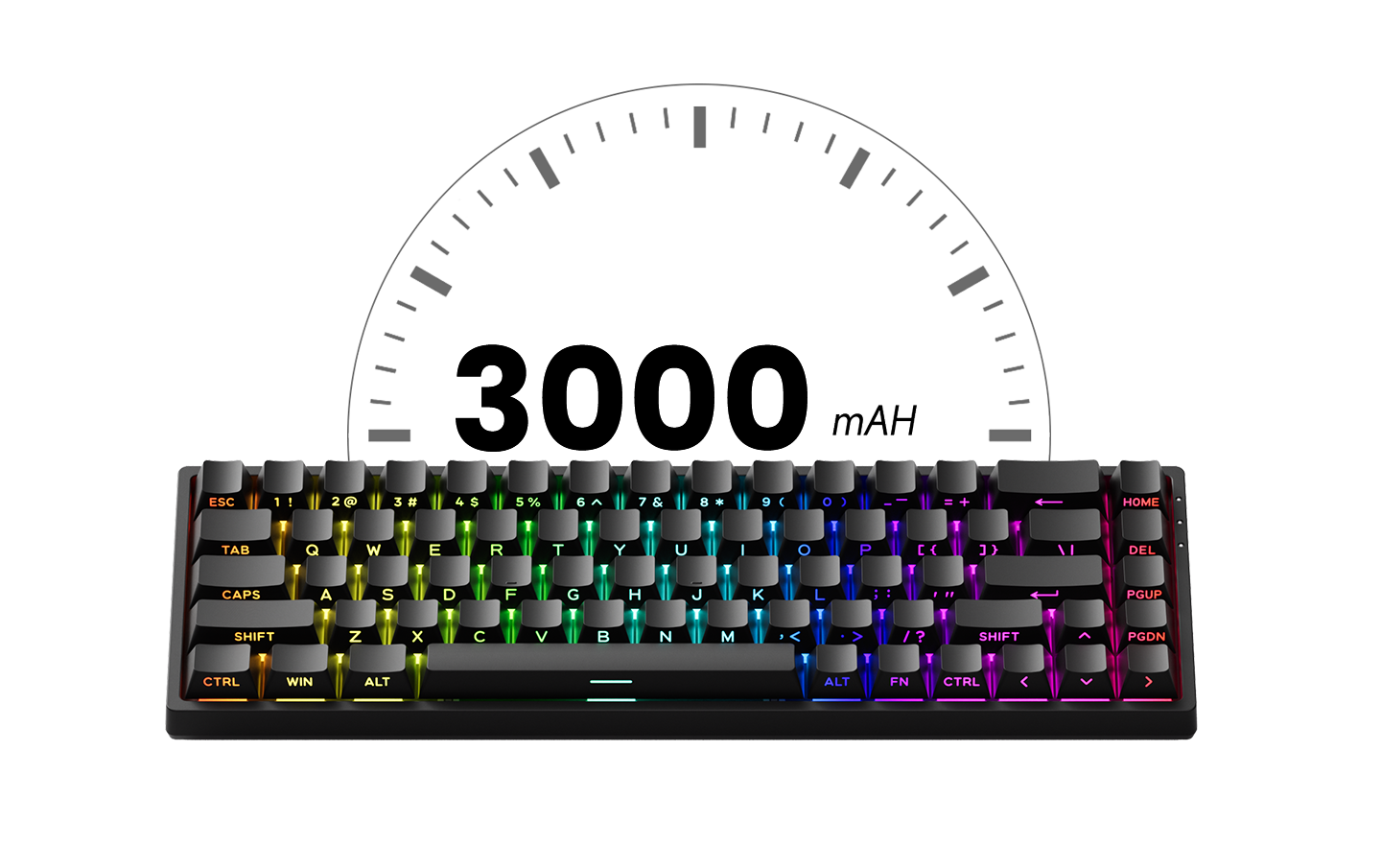 強力なCPUを搭載したFUN68 HEラピッドトリガーゲーミングキーボードは、低エネルギー消費で優れた処理能力を提供します。-20°Cから80°Cまでの自動キャリブレーション機能を備えており、より高速なパフォーマンスとバッテリー寿命の延長を実現します(ワイヤレスモデルのみ対応)。