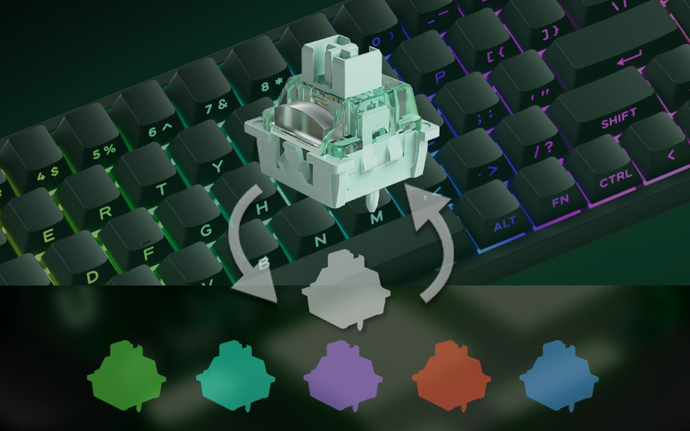 FUN68 HEラピッドトリガーキーボードは、5つのサードパーティ製磁気スイッチとの互換性を提供します。ユーザーは、MonsGeek Driver内の対応するスイッチを選択し、交換後に簡単にキーボードを調整できます。また、異なるキーに異なるスイッチを組み合わせて使用することも可能です。