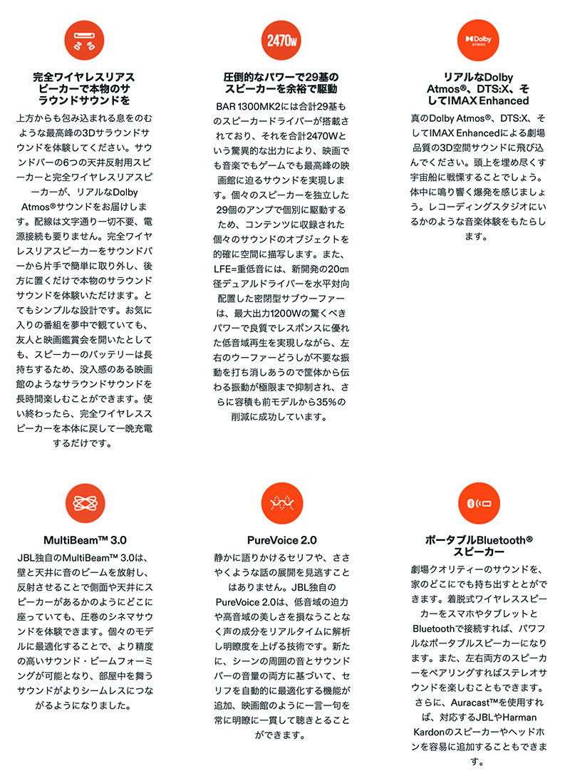 ■ JBL 独自の「MultiBeamTM 3.0」技術で包まれるようなサウンドを実現